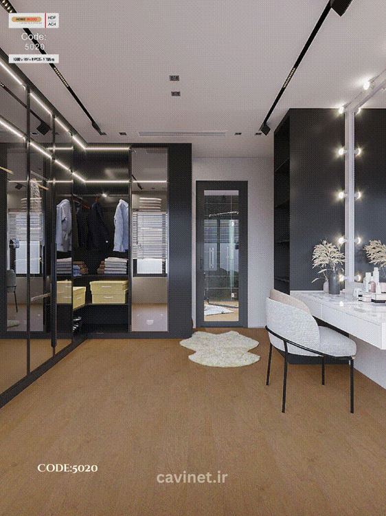 مشخصات فنی: جنس: تخته HDF با روکش وینیل ضدخش و مقاوم در برابر رطوبت