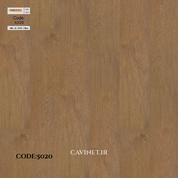 پارکت لمینت طرح چوب گردویی، ضد خش برجسته، بسته بندی 8 عددی 1.8 متر مربع، AC4, H.D.F مدل 5020
