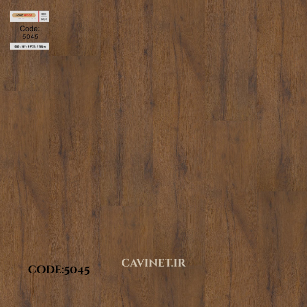 پارکت طرح چوب فندقی تیره، ضد خش برجسته، بسته بندی 8 عددی 1.8 متر مربع، AC4, H.D.F مدل 5045