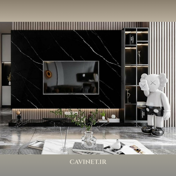 ماربل شیت طرح سنگ مشکی رگه دار گلدن بلک، ضد آب و قابل شستشو، مناسب دیوار، دو سایز کد: AP-115