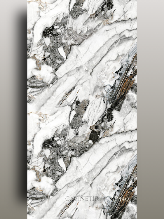 رنگبندی: طرحهای شبیه مرمر با تنالیتههای سفید، خاکستری، مشکی و رگههای طلایی یا نقرهای