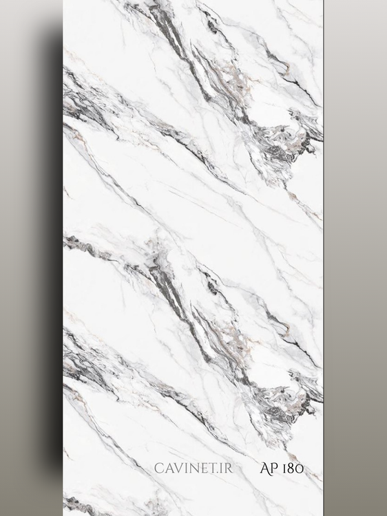 ماربل شیت طرح سنگ سفید رگه دار اسلب ، ضد آب و قابل شستشو، مناسب دیوار، دو سایز کد: AP-180