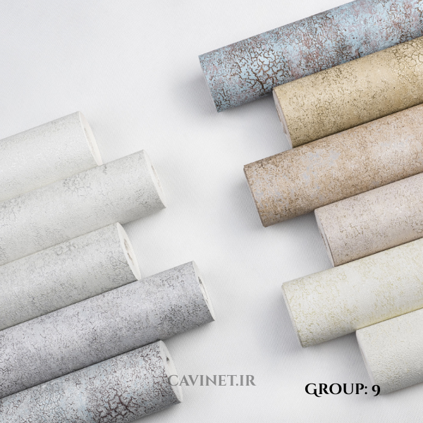 کاغذ دیواری پی وی سی طرح پتینه قابل شستشو، آلبوم کربن، رول پنج متر مربع، ده کد رنگی (گروه 9)