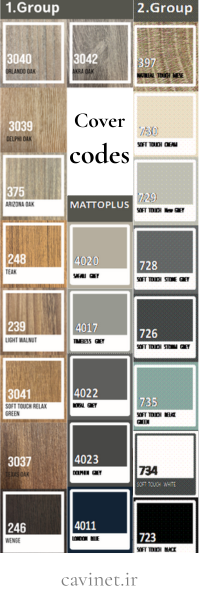 رنگبندی: تنوع بالا شامل طوسی، سفید، چوب طبیعی، پتینه و مشکی.